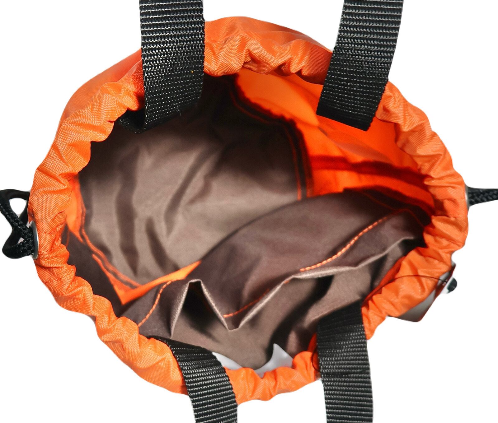 レトロなバックパックをイメージして製作しており、ハンドル部分は、バックパックのピッケルホルダー同様のテープを使用しています。