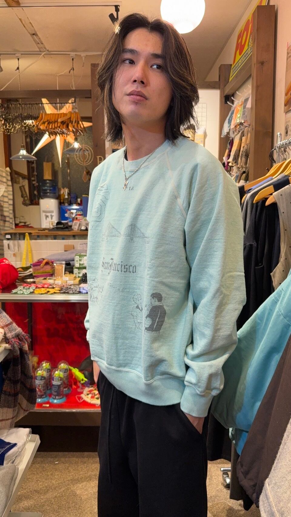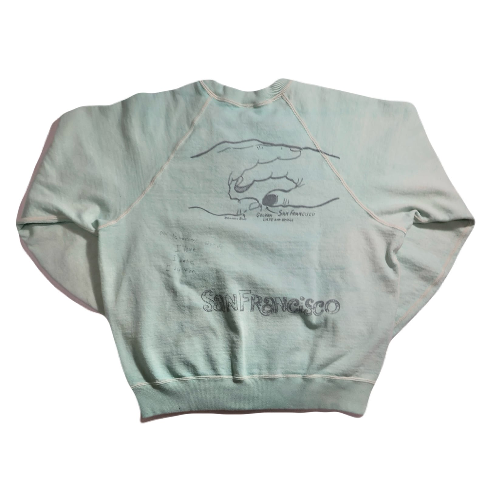 スペシャルビンテージピースな手書き落書きモチーフ。全てSan franciscoにちなんだ内容となっており非常にインパクトのあるデザインです。色々なモチーフを見るだけで楽しい気持ちになる1着です。