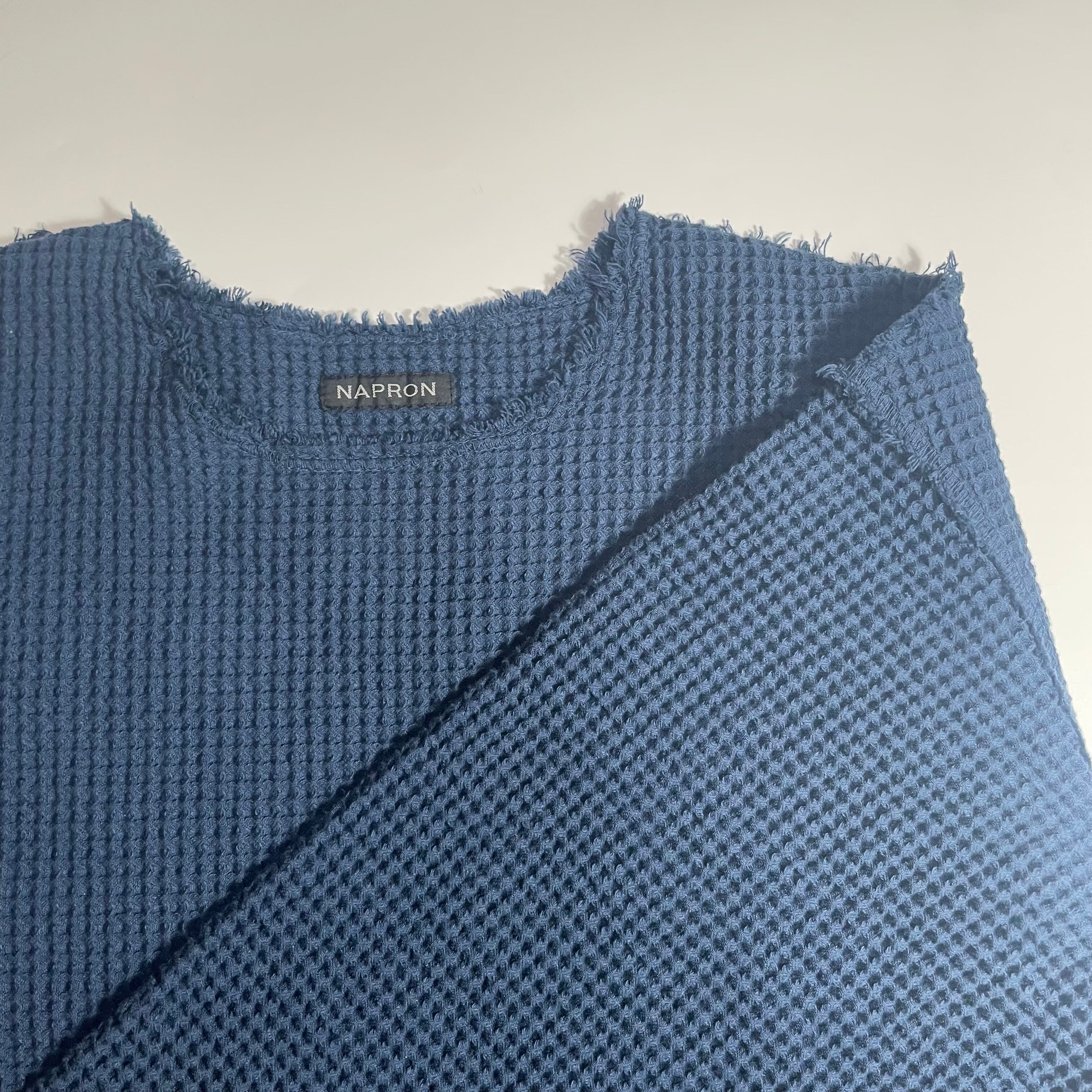 シーム切りっぱなしのラフな極厚ワッフル素材カットソーです。