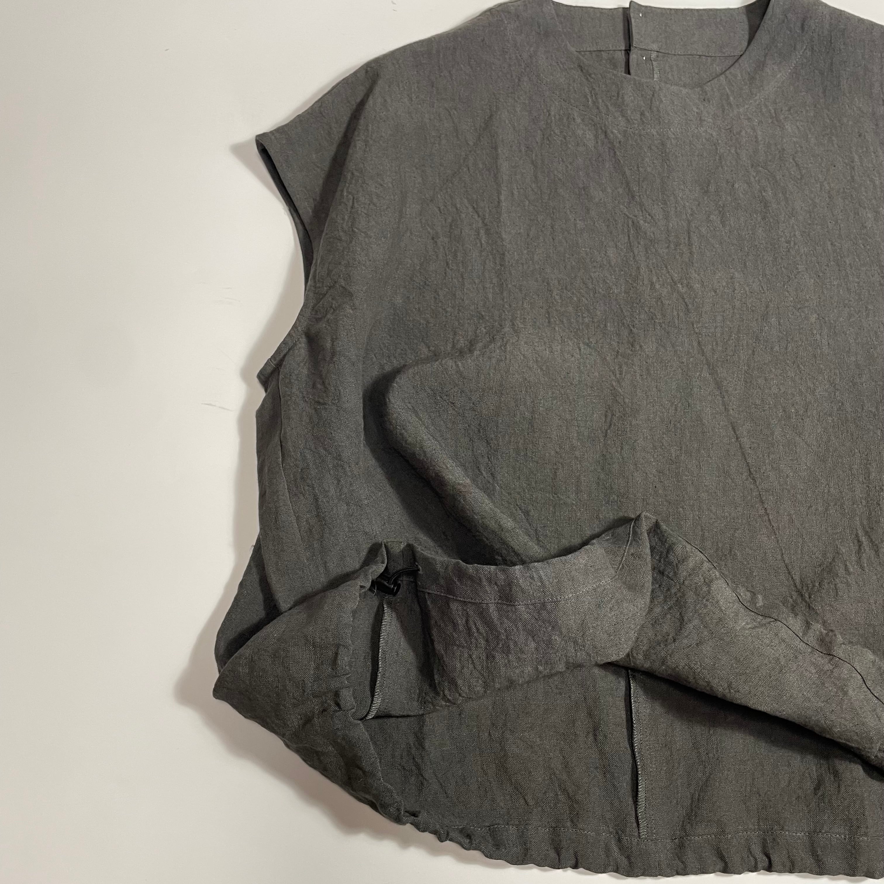 【LinenYa】NO SLEEVE BLOUSE CHACOAL