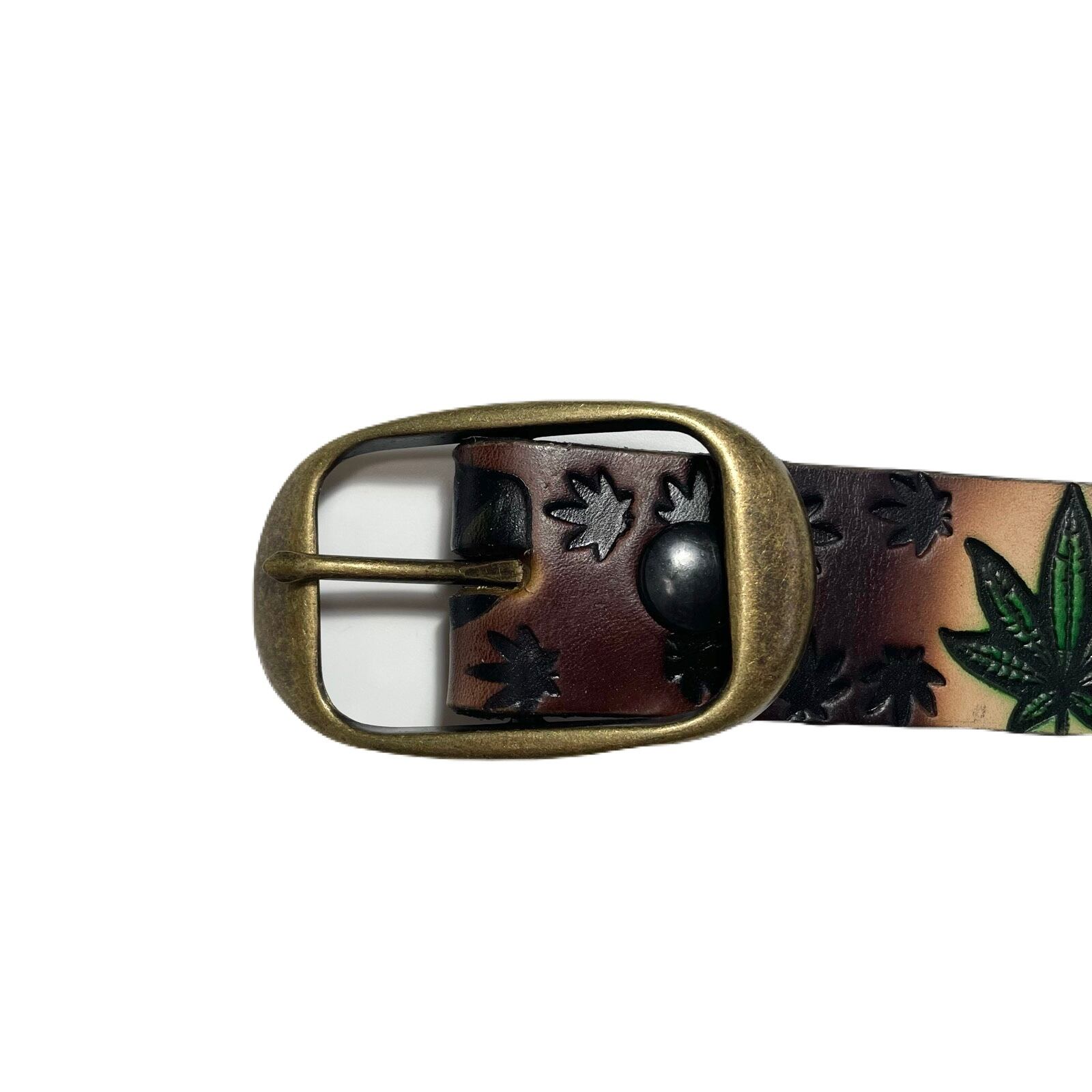 HEMP LEAF PATTERN LEATHER BELT