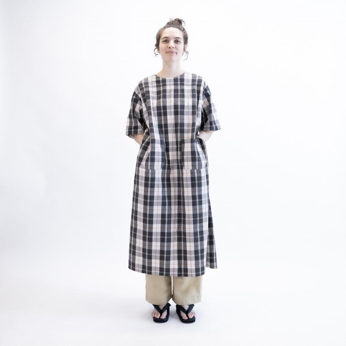 ドイツ軍のメディカルコートをスモックワンピースへとアレンジしています。